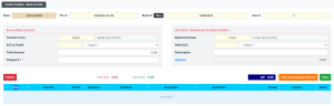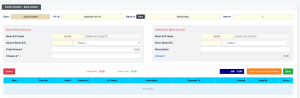 The Bank to Bank Transfer page allows back-office staff to securely transfer funds from one internal branch bank account (Source) to another internal branch bank account (Destination).