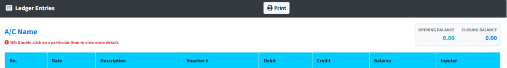 - Double Click Drill-downs: The ledger table supports double-click interaction to quickly jump into specific voucher histories without leaving the active reconciliation screen.