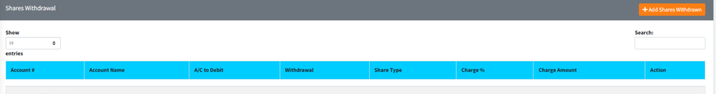 - Click the orange Add Shares Withdrawn button located at the top right of the data table.