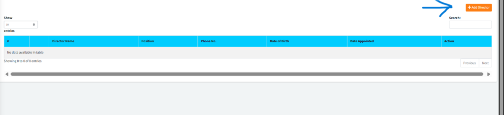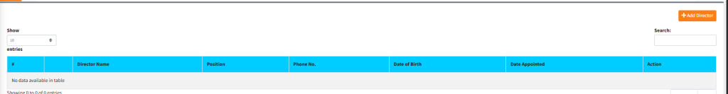 - The main screen will display a tabular dashboard listing all currently registered directors, showing their Name, Position, Phone number, Date of Birth, and Date Appointed.