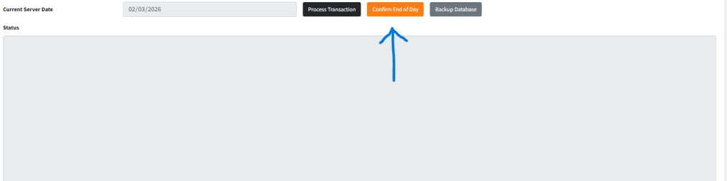 1. Once the console reads ✓ PROCESS COMPLETED SUCCESSFULLY, the orange Confirm End of Day button will become active.