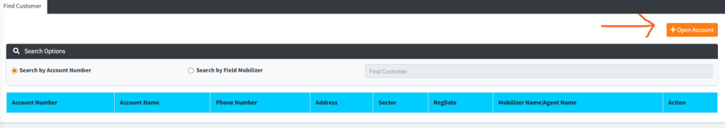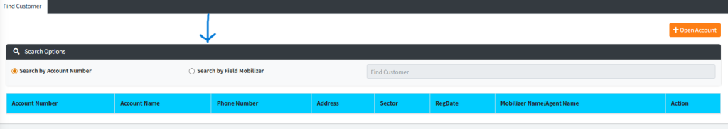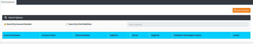 - Search Type: Choose between searching by Account Number (Global ID) or by Field Mobilizer.