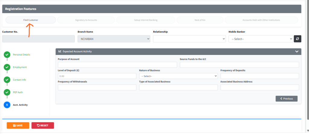 The Registration module is the primary engine for onboarding new clients into the institution. Built as a high-fidelity “Wizard,” it guides officers through the comprehensive Know Your Customer (KYC) process for both Individual and Corporate (Entity) clients. The system enforces data integrity through a multi-step roadmap, capturing everything from biometric-linked personal details to anti-money laundering (AML) disclosures and signatory mandates.
